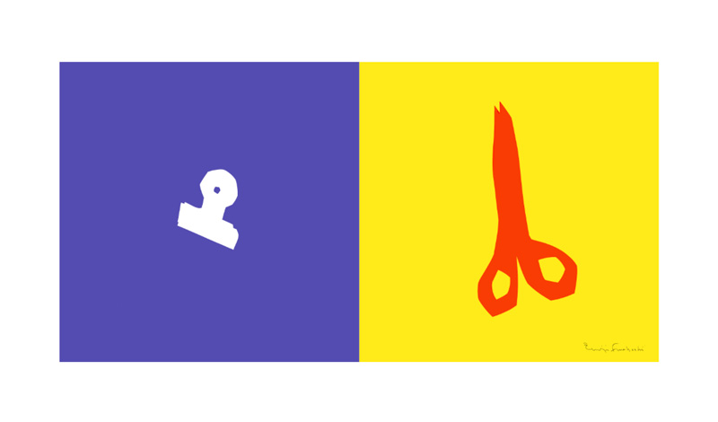 カッターにより形作られたモチーフの輪郭ラインは、とてもシャープできっぱりとしていますが、そのヴィヴィッドな色彩と形の両方から温
