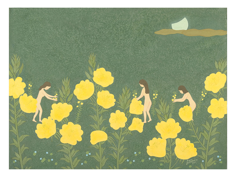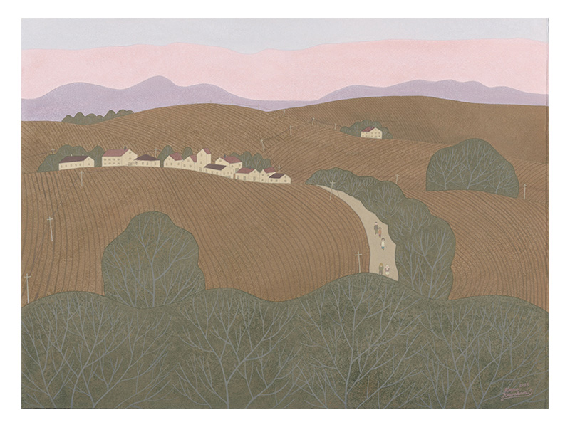 今回の個展で描かれた作品の、広々とした大地や自然の情景は、そんな故郷のイメージを彷彿と